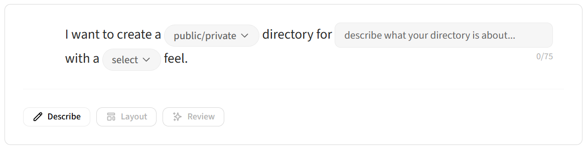 We've added an AI assisted wizard for creating new projects. To give it a spin simply create a new project and you'll be presented with the following UI: